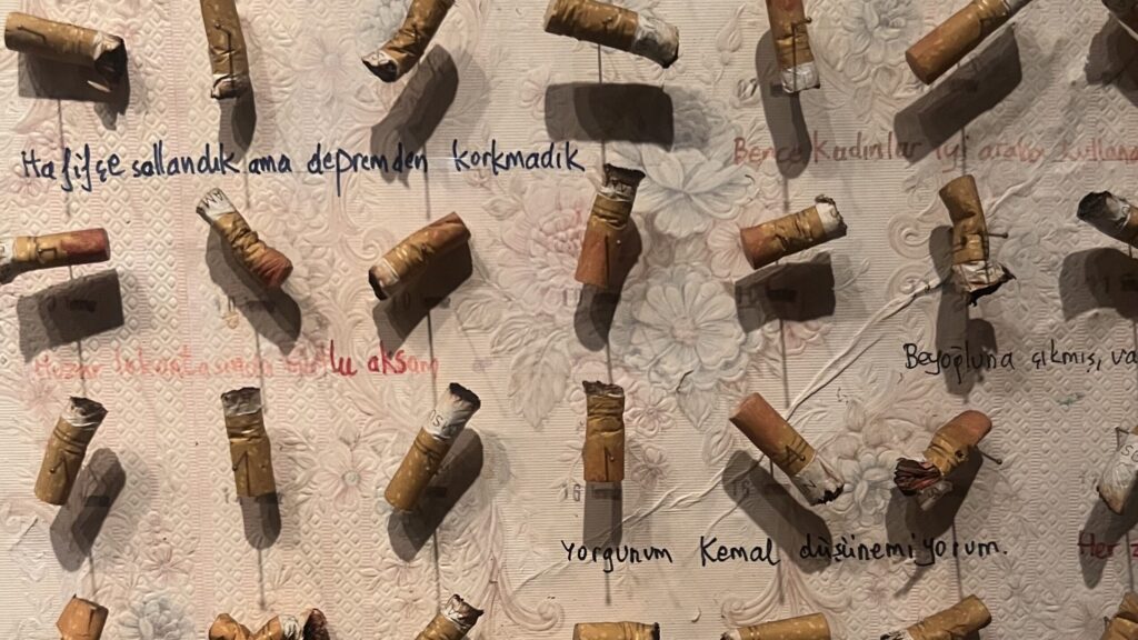 Hər bir kötüyün altında onun çəkildiyi tarix və Kamalın həmin günə dair “Bu gün mənə gülümsədi” kimi qeydləri yer alır. Bəzi siqaretlərin ucunda hələ də qalan dodaq boyası izləri, itmiş bir sevgilinin geridə qoyduğu ən “canlı” nişanədir.